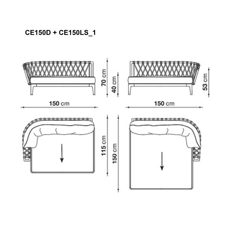 1x ERICA Endelement (CE150D|N), Breite 150 cm | Tiefe 115 cm